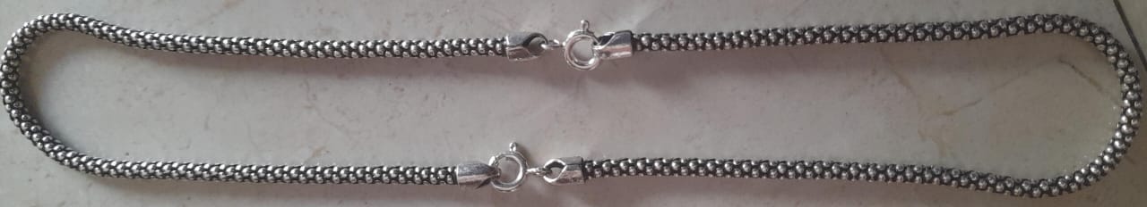 Experience understated elegance with this Sterling Silver Rope Chain Payal, featuring a finely woven design that blends strength with sophistication. The oxidized silver finish gives it a timeless, vintage look, while the sturdy clasp ensures durability and comfort. Perfect for both men and women, this anklet exudes effortless style â whether worn daily or on special occasions.