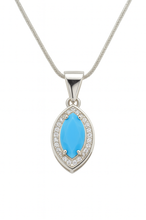 Graceful and captivating, the Blue Marquise Pendant Necklace embodies serenity and sophistication. The marquise-shaped blue stone glows with calm energy, encased within a shimmering halo of fine zirconia that adds a touch of luxury.