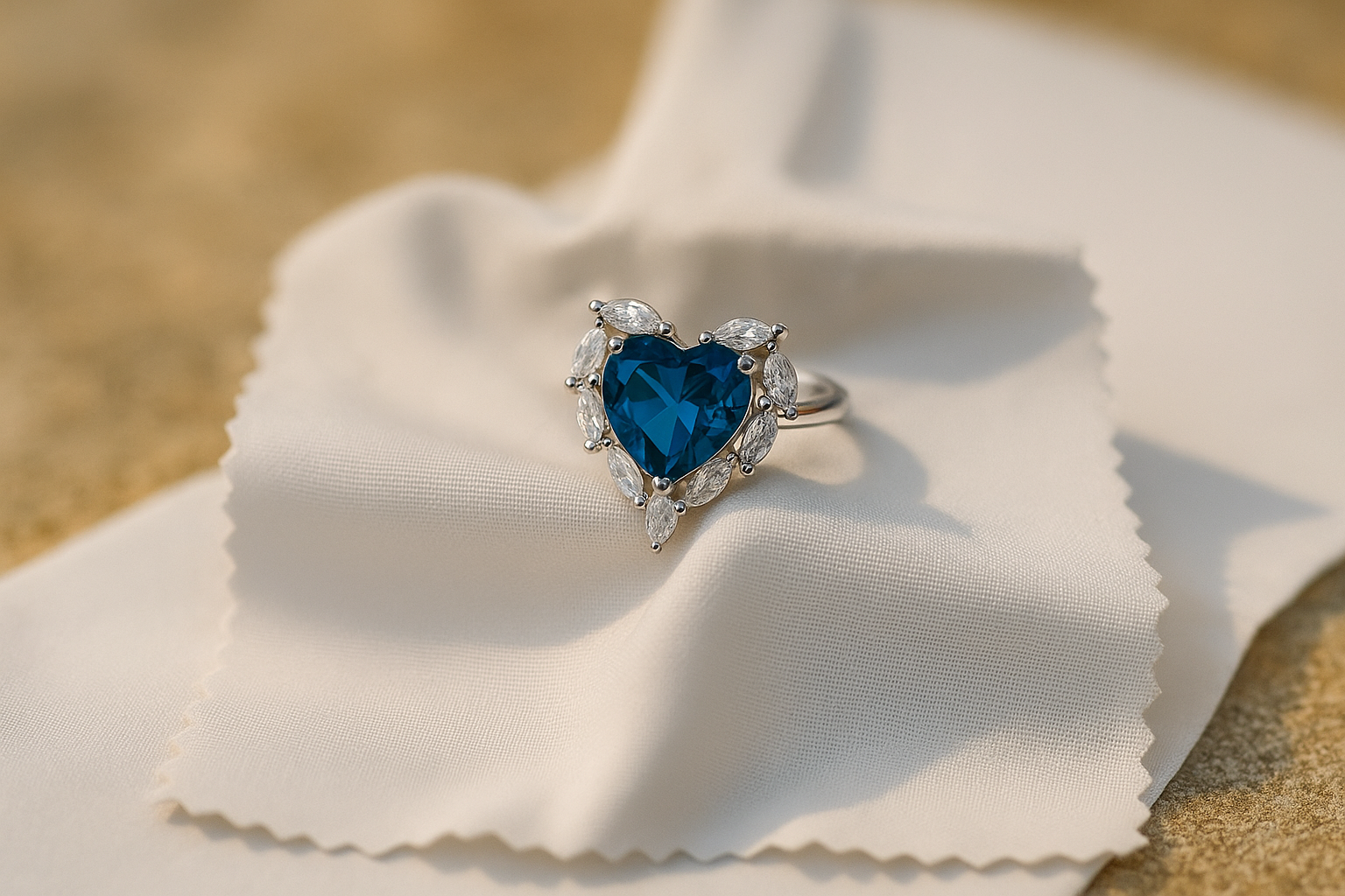 Radiate elegance and emotion with Miora’s Sterling Silver Sapphire Heart Ring — a dazzling symbol of love and grace. At its center shines a brilliant heart-shaped blue gemstone, reflecting deep affection and timeless charm. Surrounded by a halo of sparkling marquise-cut white stones, this ring captures the essence of luxury and sentiment in one breathtaking design.