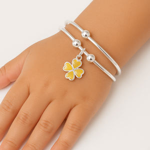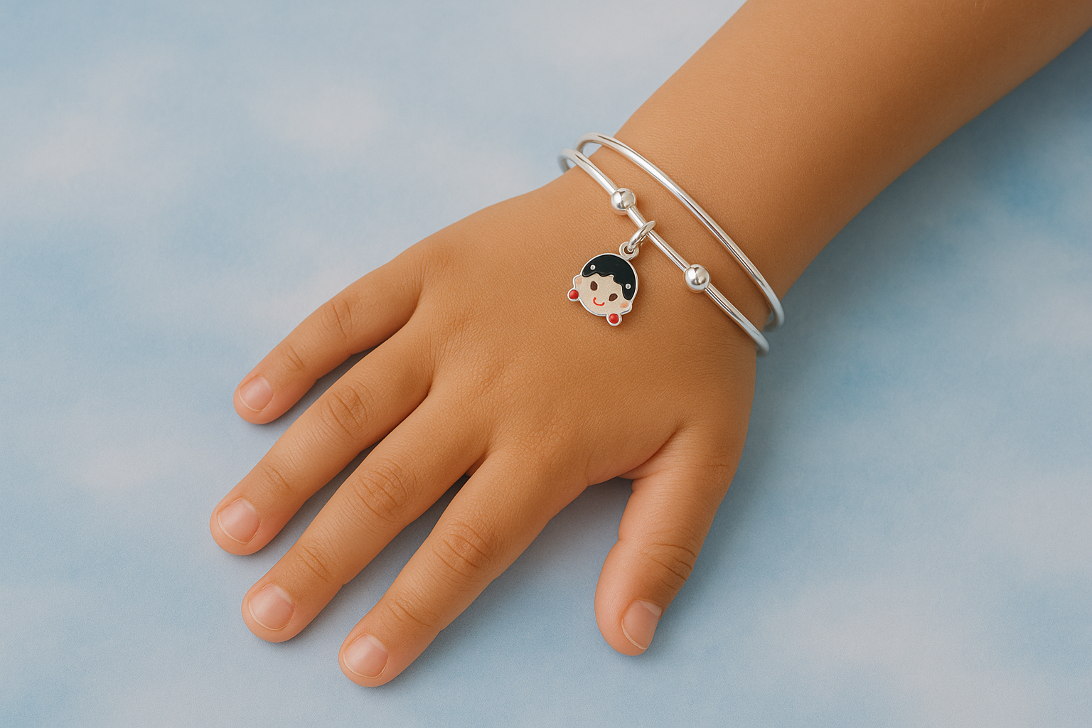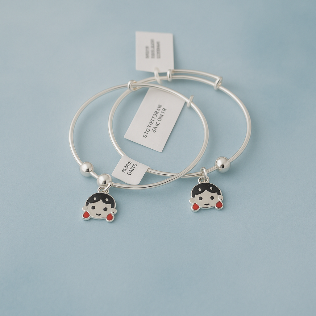 Celebrate your little one’s innocence with Miora’s Sterling Silver Baby Kada Bracelet Collection — a delightful range of adjustable silver kadas featuring charming enamel motifs. Each bracelet is lovingly designed to add joy, color, and cuteness to your baby’s tiny wrists. Perfect for birthdays, gifting, or keepsakes, these bracelets are crafted for comfort and safety while making your baby shine with adorable elegance.