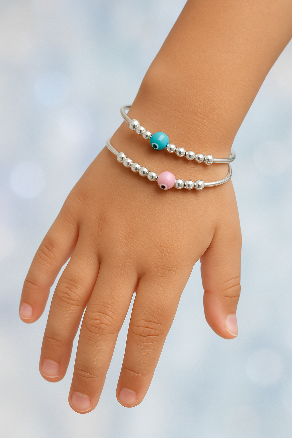 Delight your little one with these adorable Sterling Silver Beaded Baby Kada Bracelets. Crafted with smooth silver beads and accented with colorful enamel beads, these bracelets add a playful charm while keeping comfort in mind. Perfect for daily wear or gifting on special occasions like birthdays, naming ceremonies, or festive celebrations.