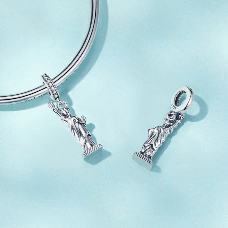 A symbol of freedom, hope, and new beginnings—this Liberty Pendant Charm brings one of the world’s most iconic monuments to your jewellery collection. Hand-crafted in polished sterling silver, the charm showcases the Statue of Liberty in remarkable miniature detail, from the torch she lifts proudly to the folds of her robe.