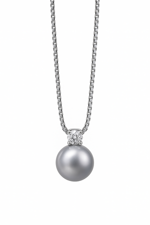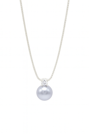 Featuring a lustrous grey pearl suspended gracefully beneath a brilliant zirconia accent, this pendant captures sophistication in its purest form. The smooth finish and clean silver tone make it a versatile accessory for both everyday wear and formal occasions.