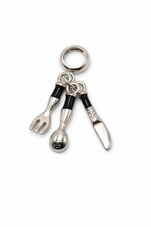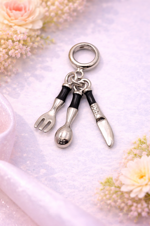 A unique charm inspired by dining elegance and culinary passion. Ideal for food lovers and chefs. Approx dimensions: 13mm x 10mm.