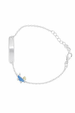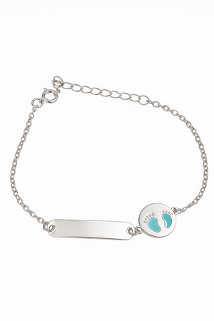 Made from pure 925 Sterling Silver, this delicate bracelet features an adorable blue footprint charm symbolizing your baby’s first precious steps. The smooth engraving plate offers space to personalize it with your little one’s name, date of birth, or a sweet message, making it a treasured token of love and joy.