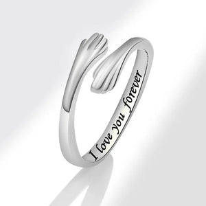 A gentle reminder of love, closeness, and comfort—this Hug Message Ring wraps around your finger like a warm embrace. Its elegant open-band design features sculpted hands reaching toward each other, symbolising support, connection, and unspoken affection.