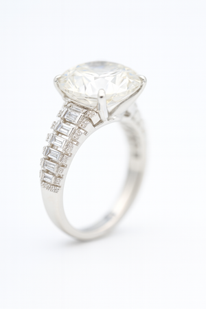Grand Solitaire Cocktail Ring | Round & Baguette Swiss Zirconia