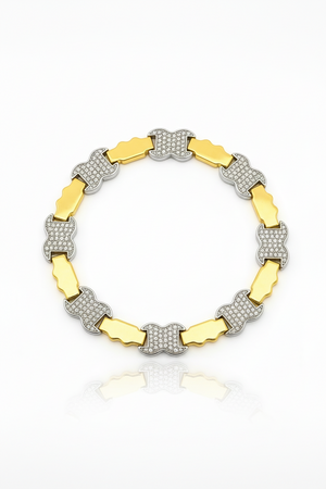 Make a bold statement with this Dual-Tone Silver & Gold Link Bracelet, crafted for those who appreciate fine details and timeless elegance. The bracelet features alternating geometric links — a harmonious blend of matte silver texture and polished gold finish. Its intricate design offers a luxurious look that transitions seamlessly from day to night, making it perfect for both men and women who value sophistication with a modern edge.