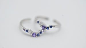Elevate your everyday elegance with Miora’s stunning dual-tone crystal toe rings, crafted to perfection for the modern woman. The graceful design features a sparkling blend of deep blue and violet stones, delicately set in polished silver for a luxurious yet subtle look. Each stone catches the light beautifully, adding a hint of royalty and charm to your step. With an adjustable band for a perfect fit, these toe rings bring together comfort, beauty, and timeless sophistication — ideal for festive wear, vacations, or everyday sparkle.